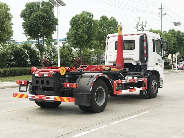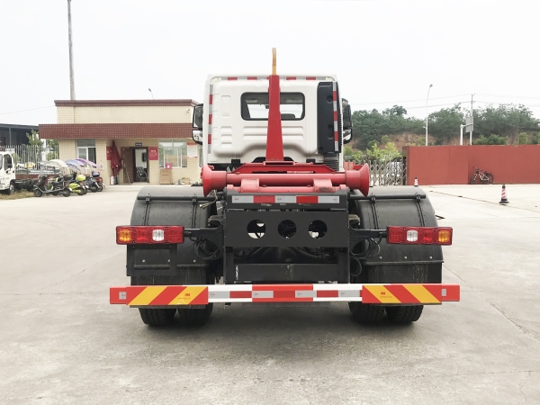 車廂可卸載式垃圾車,又稱勾臂式垃圾車、拉臂式垃圾車。該車廣泛適用與城市街道學(xué)校垃圾處理,可一車配備多個(gè)斗,各個(gè)垃圾點(diǎn)放置多個(gè),帶自卸功能,液壓操作,方便傾倒。在平日里可將車載垃圾箱放置到各個(gè)垃圾收集站,待垃圾收集滿后,該車可直接開赴至垃圾站,通過(guò)液壓系統(tǒng)的操控,可將垃圾車后座上加裝的勾臂放下,掛住站內(nèi)垃圾箱前端的連接點(diǎn),將垃圾箱拉至車體的后座上,此時(shí)即可啟動(dòng)車輛,將垃圾運(yùn)送至垃圾處理站內(nèi),進(jìn)行自卸式傾倒。該車主要的優(yōu)點(diǎn)就是可一車配多斗,一輛車就可以維持?jǐn)?shù)個(gè)垃圾收集站的運(yùn)轉(zhuǎn),效率高,且箱體為密封式設(shè)計(jì),不會(huì)造成二次污染。